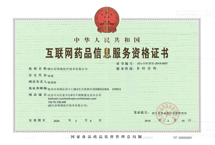 互聯網藥品信息服務資格證書[(浙)-非經營性-2015-0007]